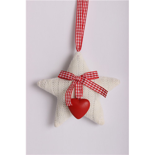 Kötött csillag akasztós +szív fehér 12cm