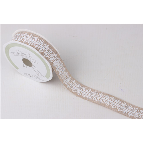 Szalag vászon virágos 25mm x 10m  Krém