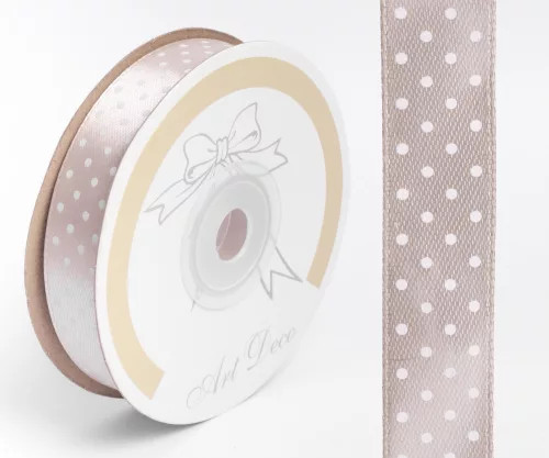 Szalag szatén pöttyös 15 mm x 25 m - Drapp
