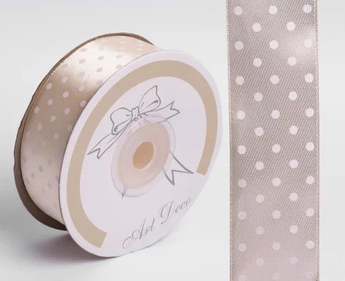 Szalag szatén pöttyös 25 mm x 25 m - Drapp