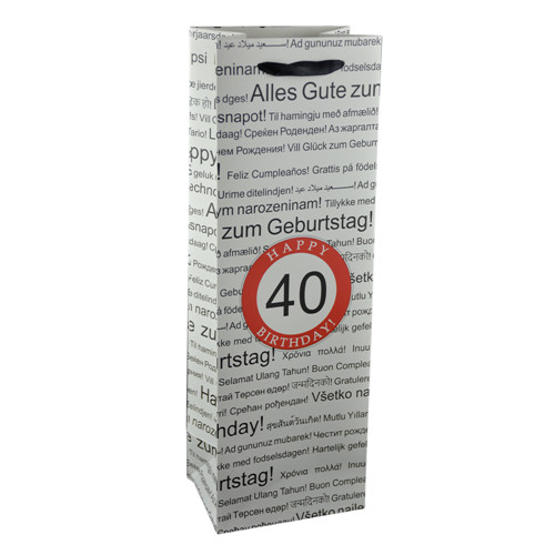 Papírtasak italos "Happy Birthday" több nyelven 12x36cm - Fehér "40"