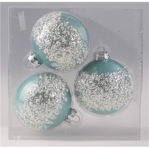 Ü.kd. gömb*3 jégkék+gyöngy 8cm
