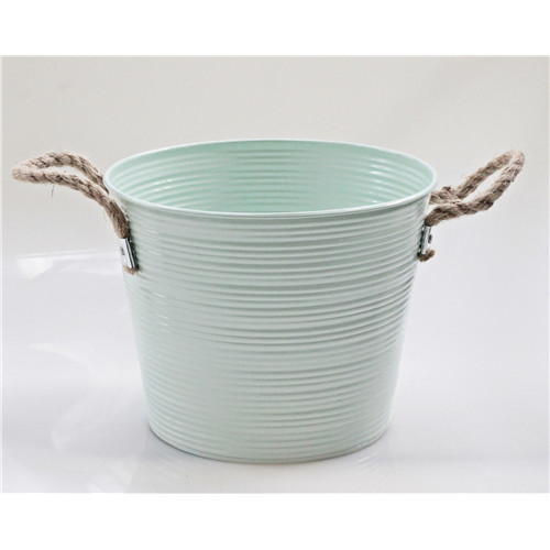 Bádog kaspó zsinór füles csíkos 13x11cm - Zöld