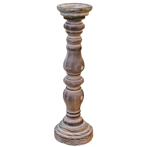 Gyertyatartó fa oszlop égetett 12x40 cm - Barna