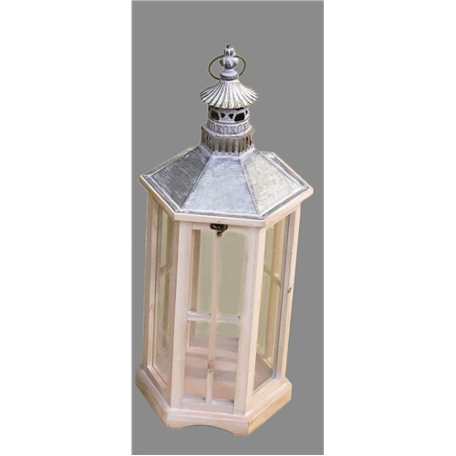 Fa lámpás szett 6szög 62 cm - Natúr/fehér M-es
