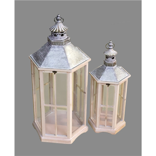 Fa lámpás szett 6szög 62 / 80 cm - Natúr/fehér