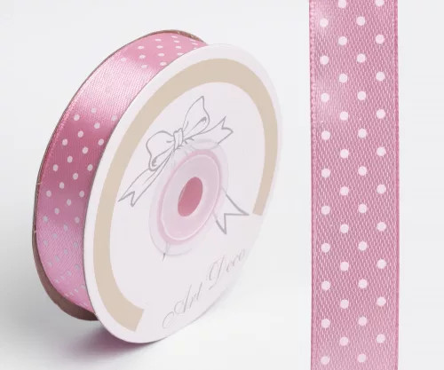 Szalag Szatén Pöttyös 15 mm x 25 m - Sötét rózsaszín