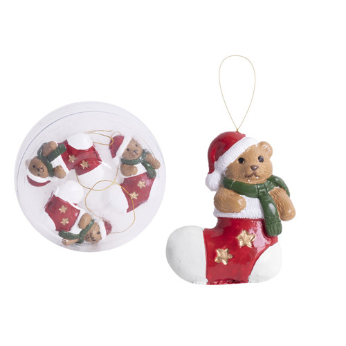 Porcelán zokni+maci 3,5x4,3cm - Piros/zöld S/3