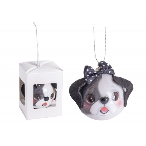 Gömb műanyag fekete-fehér kutya fej 6,5cm