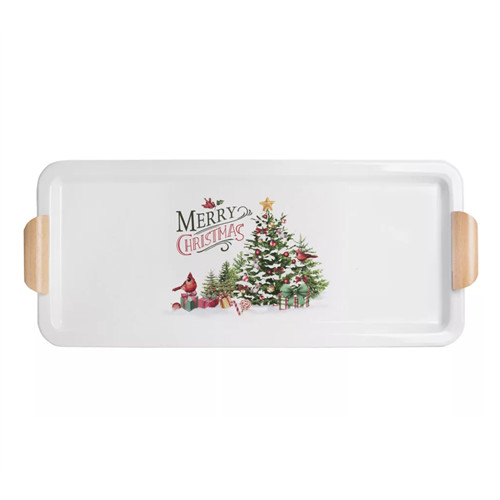 Tálca bádog fenyőfa+"merry Chrismas" felirat 56x23cm