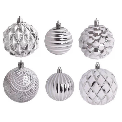 Műanyag gömb 6-8cm - Fehér/ezüst vegyes S/6