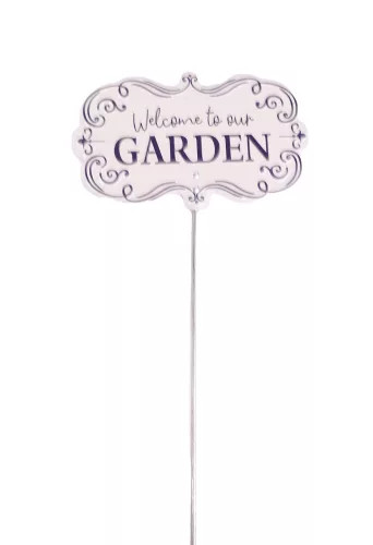 Bádog beszúrós tábla "Welcome to our GARDEN" felirattal - Krém