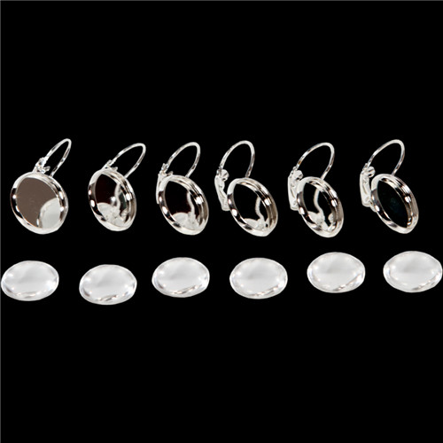 Fém fülbevaló alap lencsével 12 mm - Ezüst 3pár/csom.