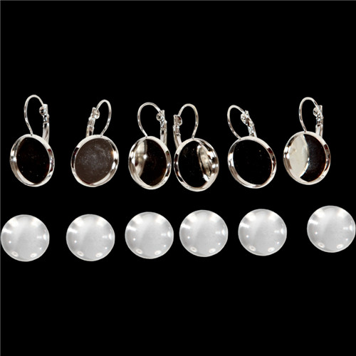 Fém fülbevaló alap lencsével 16 mm - Ezüst 3pár/csom.