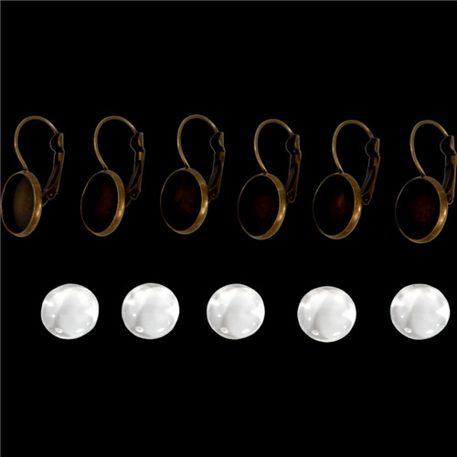 Fém fülbevaló alap lencsével 12 mm - Bronz 3pár/csom.
