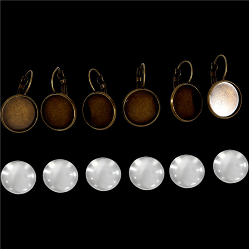 Fém fülbevaló alap lencsével 16 mm - Bronz 3pár/csom.