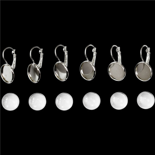 Fém fülbevaló alap lencsével 14mm - Ezüst 3pár/csom.