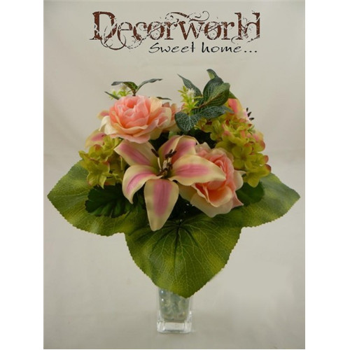 Szatén Liliom, Hortenzia, Rózsa vegyescsokor 34cm