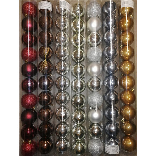 A következő színek közül választhat: vörös (glitteres minden második gömb), krém (fényes), barna (fényes), szürke (fényes), szürke (glitteres minden második gömb), antracit kék (fényes), pezsgő (fényes).