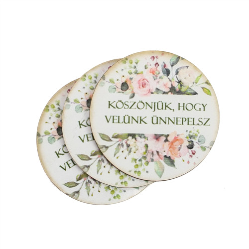 Nyomtatott dekorkarton 5 cm - Köszönjük, hogy velünk ünnepelsz 3 soros 3db