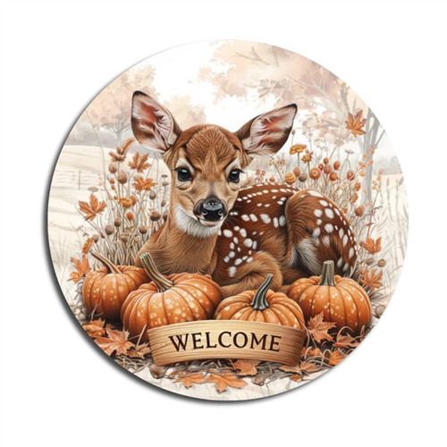 Nyomtatott fa tábla koszorú közép 11,8cm - Bambi welcome