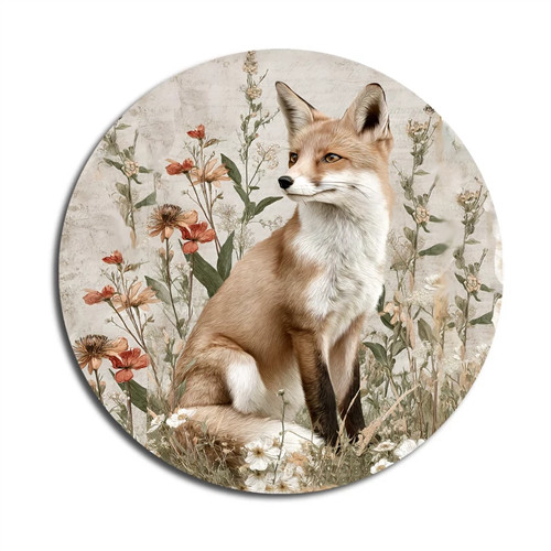 Nyomtatott fa tábla koszorú közép 11,8cm - Erdei állatok - róka