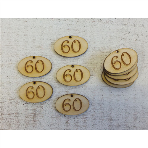 Natúr fa - Évfordulós gravírozott ovál táblák 4x2,5 cm - 60-as (10db/csom.)