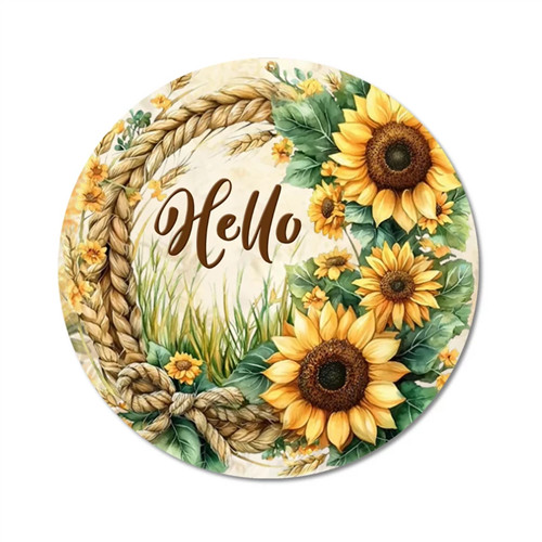 Nyomtatott fa tábla koszorú közép 11,8cm - Napraforgós Hello