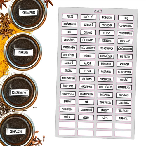 Matrica - Fűszerek 3x1,1cm 56+8db üres/lap