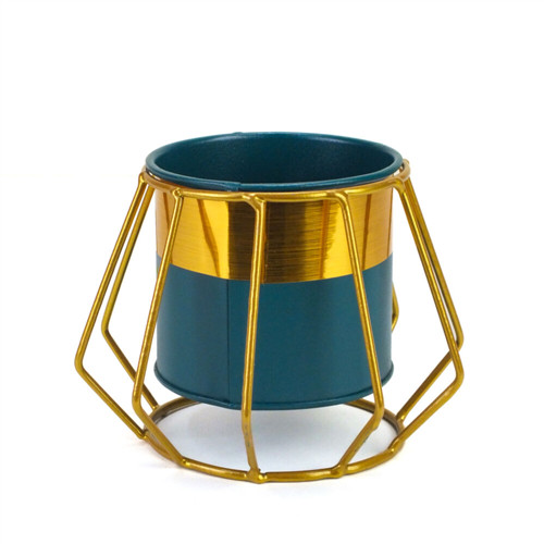 Kaspó fém keretes 15x11cm - Zöld-arany