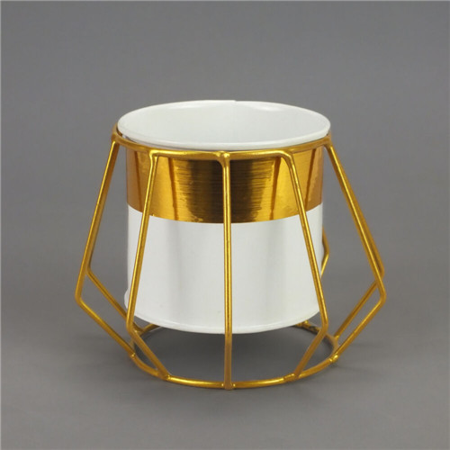 Kaspó fém keretes 9x11,5cm - Fehér-arany