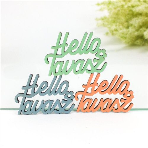 "Hello Tavasz" írott felirat 6,7x8,5 cm - Pasztel színek S/3