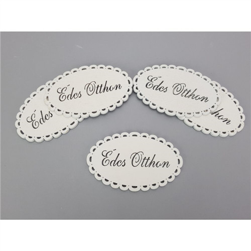 Fa tábla ovál "Édes Otthon" 8x5 cm - Fehér