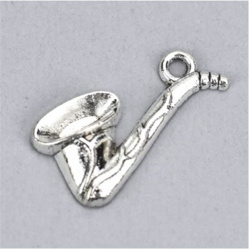 Fém medél saxofon 1,2x2 cm - Ezüst 5db/csom.