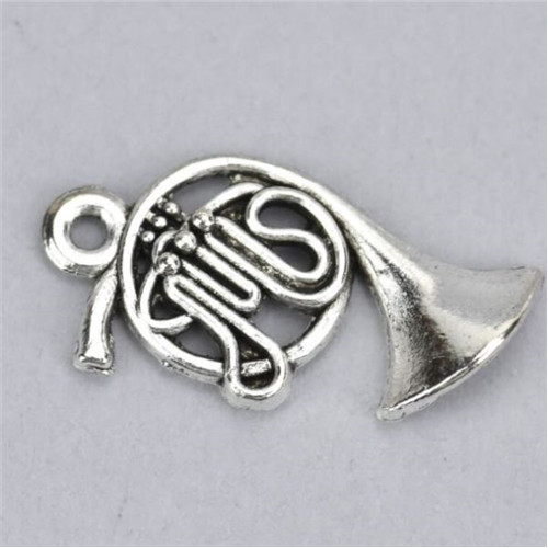 Fém medél kürt 1,7x2,3 cm - Ezüst 5db/csom.