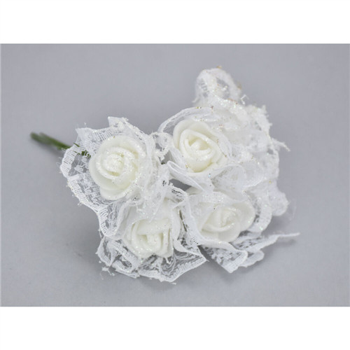 Csipkés rózsacsokor 6 fejes 9 cm - Fehér