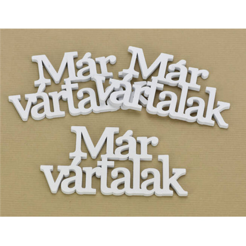 Fa "Már vártalak" felirat koszorúra fehér 7x14cm 3db/csomag