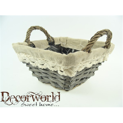 Kosár fonott/textil szél szögletes 18x10cm 2füles