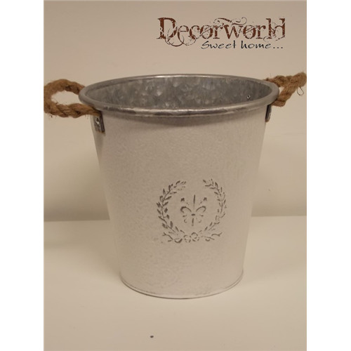 Vödör cink nyomott virág mintás fehér H26 2kötél füles