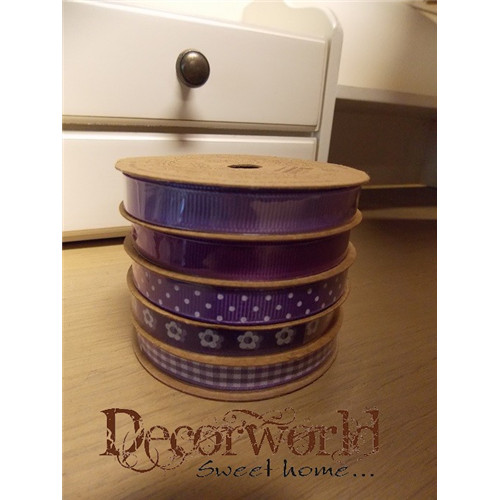 Szalag textil 5m 5csík mintás lila