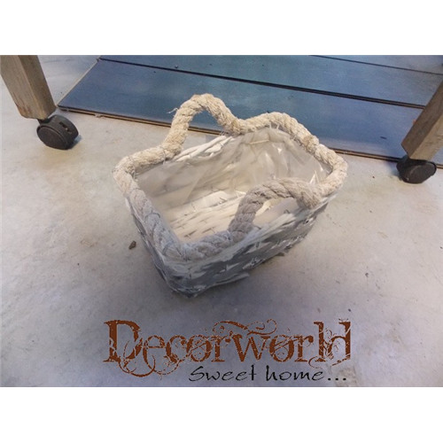 Kosár vessző szögletes füles 23x13,5x10cm szürke