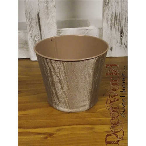 Kaspó cink kerek 9x10cm bársony hatású - Világosbarna
