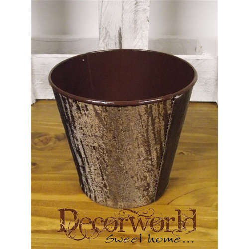Kaspó cink kerek 14x13cm bársony hatású - Sötétbarna
