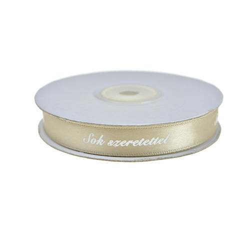 Szatén szalag 13mm x 25y Sok szeretettel feliratok bézs