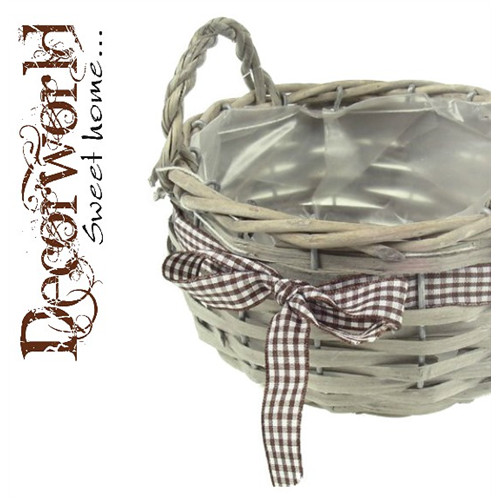 Kosár vessző kerek D16 H10 masnis mosott szürke