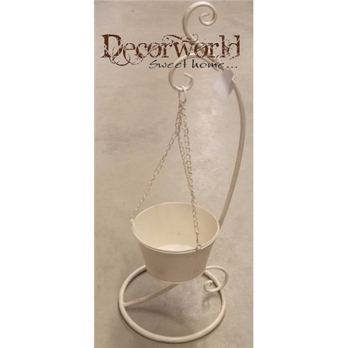 Kaspó fém akasztós tartóval tört fehér