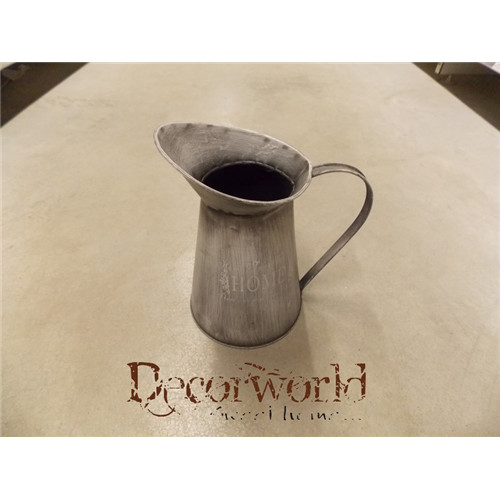 Kaspó fém 12,5x12xH22cm "Home" feliratos kancsó forma szürke