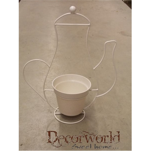 Kaspó fém teáskanna tartón 34x14xH41cm fehér