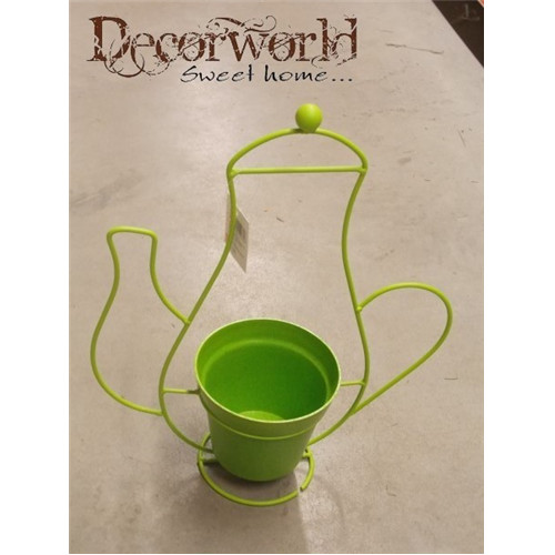 Kaspó fém teáskanna tartón 34x14xH41cm zöld
