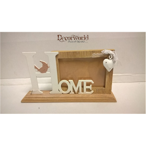 Képkeret fa "Home" felirattal, madárral 21x4,5x11cm